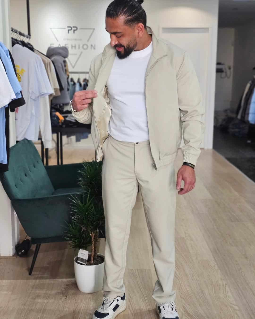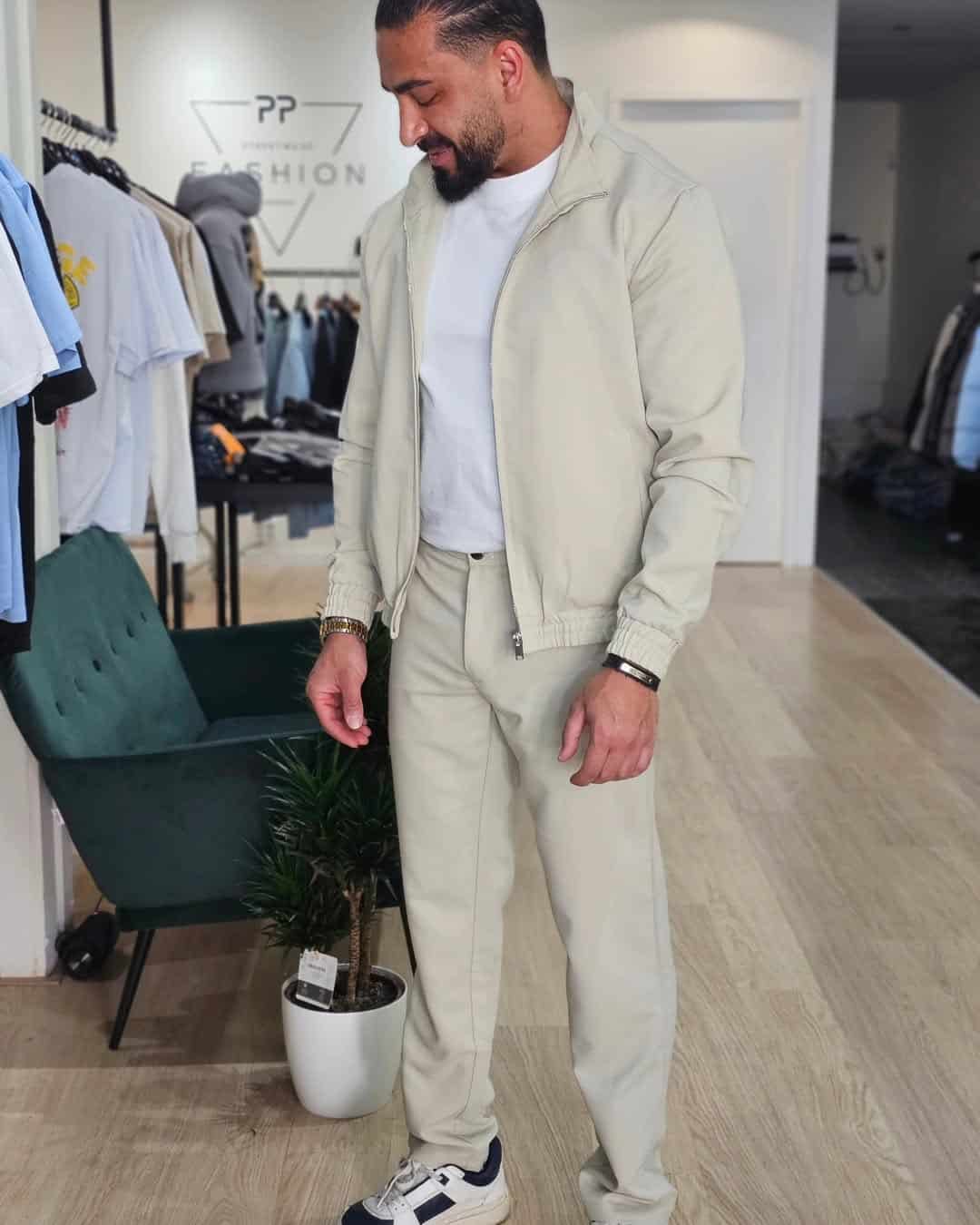 2 Delige Set van effen jas en broek Beige 162